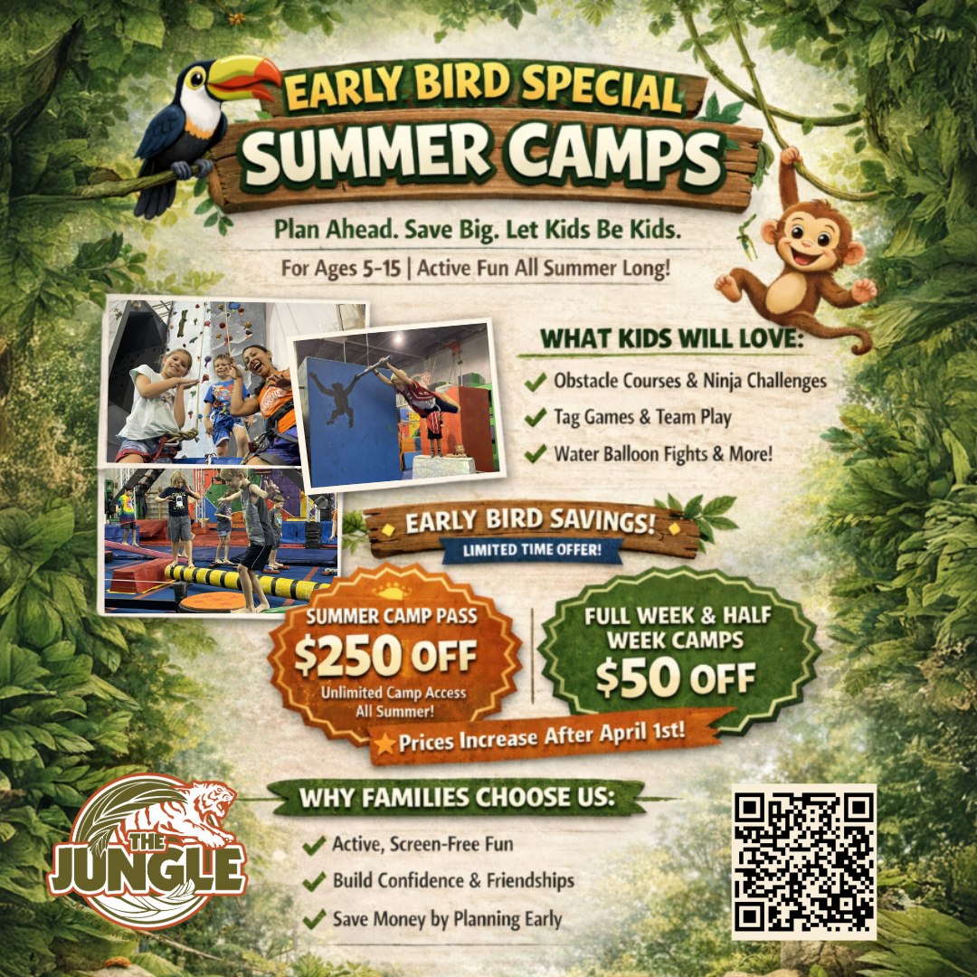 Keep your kids active and engaged after school with our dynamic program at The Jungle. Perfect for kids to build confidence, burn energy, and make new friends!