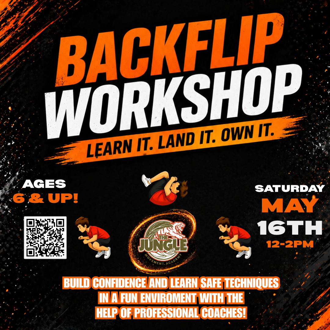 Ages 6 and up. This workshop is flippin awesome! In this workshop, you will be learning and performing all of the progressions and exercises that will lead you on your path to successfully landing a backflip. Everyone can participate in this workshop, you don’t need prior experience. With all of the mats, pads, and foam pit at our disposal, our professional coaches keep you safe while learning this skill. Our goal is to get you to walk away from this workshop knowing how to do a backflip, and knowing how to progress safely on your own.
